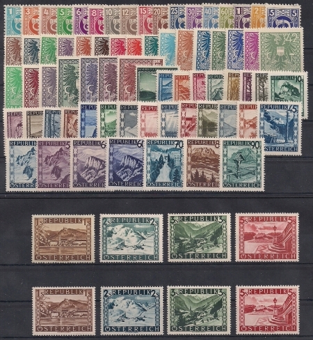 Österreich Jahrgang 1945 postfrisch, ab der ANK Nr. 697 - 774 ohne Aufdruckmarken 1945, DB