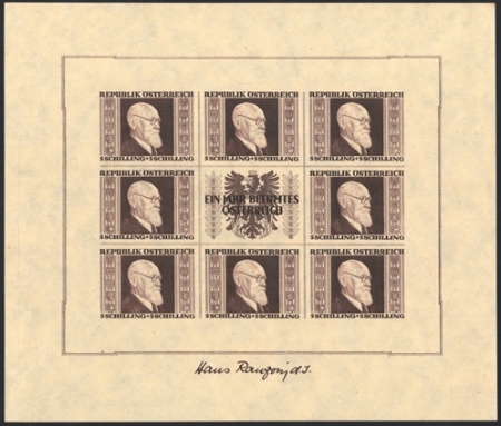 Österreich, 1946, ANK Nr. 780 A - 783 A, MICHEL Nr. 772 B - 775 B, Dr. Karl Renner - Renner Kleinbogen bzw. Renner Block, postfrisch, ATTEST Soecknick "echt und einwandfrei", DB DOKU