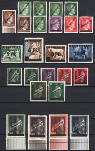 Österreich, 1945, ANK Nr. (8)a + (8)b + 660 - 663 + 664 - 667 + 668 I + 668 II - 671 + 672 II + 673 I + (9) - (12), 1. Wiener Aushilfsausgabe - 3. Wiener Aushilfsausgabe, postfrisch, DB D430